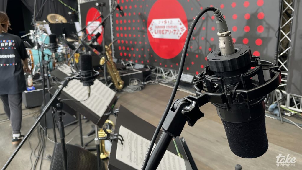そんな熱い演奏の裏には、酷暑のステージでマイクセッティングする音声スタッフの努力があります。